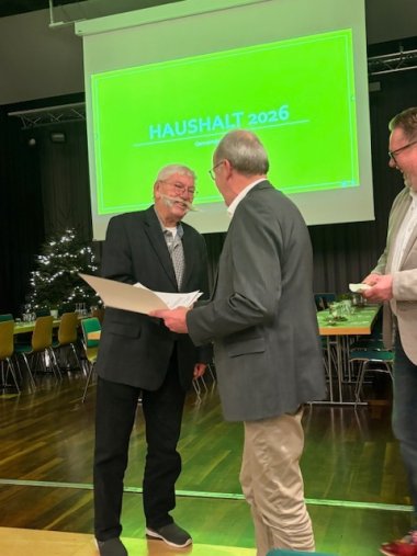 Bürgermeister Claus Steinmetz ehrt Klaus Urbanek als besten aktiven Radler und besten Parlamentarier der Gemeinde Wabern