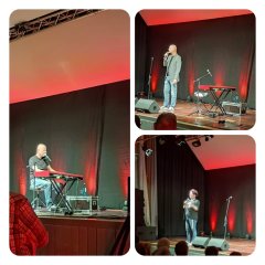 Musik mit der Band Looking Back. Ein Blick zurück in die 60er und 70er Jahre. Songs der Beatles, Rolling Stones, etc. wurden akustisch mitreißend vom Ensemble um Sänger Georg Bräutigam geboten. Viele Musikkenner dieser Zeit befanden sich im Publikum und waren stimmungsvoll mit dabei. Es wurde kräftig mitgesungen und die kurzen Statements zu den Entstehungsgeschichten der Songs, waren unterhaltsam und informativ.