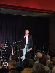„Ja, hallo erstmal. Ich weiß gar nicht, ob Sie´s wussten, aber…“ Mit diesem wiederkehrenden berühmten Satz startete er nach der Begrüßung von Alexandra Vogt-Schulz in den Abend bei einer voll besetzten Mehrzweckhalle.
