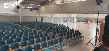 In diesem Jahr wurden zwei Locations für die Darbietungen vorbereitet. Der Kulturraum im Bahnhof und die Mehrzweckhalle. Bei einem Zuschauerkontingent, das die Anzahl von 120 BesucherInnen überschreitet, ziehen wir sozusagen in die Mehrzweckhalle um. Dies bot sich für die Events mit TV-Star Claudia Michelsen und bei Kabarettist Rüdiger Hoffmann an, da die Vorverkaufszahlen dies in kurzer Zeit nach dem Ticketverkaufsstart abzeichneten. Die Vorbereitungen liefen auf Hochtouren, so dass beide Locations für viele Gäste gut bespielbar sein konnten.