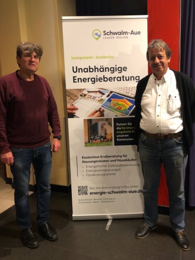 Energieberater Jochen Steube und Günter Gumz freuen sich über die gut besuchte