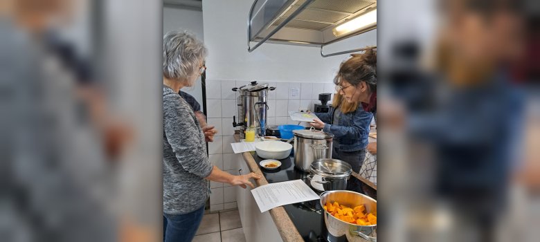 Gemeinsam bereiteten die Teilnehmerinnen ein buntes Menü zu: einen Kürbis-Zucchini-Auflauf, Apfel-Walnuss-Chutney, duftenden Basmatireis und ein Gemüse-Curry mit Brokkoli und Möhren