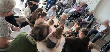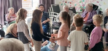 Am 08. September 2025 war es soweit. Der erste Besuch von Kindern aus der Kita Schatzkiste im Waberner Altenzentrum der AWO stand an. Zwölf Kinder gingen mit zwei Erzieherinnen und einem Praktikanten los und besuchten die liebenswerten älteren Bewohner. Es wurde gemeinsam gesungen, musiziert, gelacht und Bewegungslieder für Jüngere und Ältere angeboten. Die Kinder zeigten ein paar von ihren Kreisspielen, die bei den älteren Menschen sehr gut ankamen.