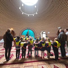 In der Bait-ul-Muqiet Moschee wollten die Kinder wissen: „Warum dürfen manche kein Schweinefleisch essen?“ Der Imam erklärte freundlich die religiösen Regeln und zeigte, dass verschiedene Familien unterschiedliche Traditionen haben und führte uns durch den Glauben, sowie die Besonderheiten der Moschee in Wabern.