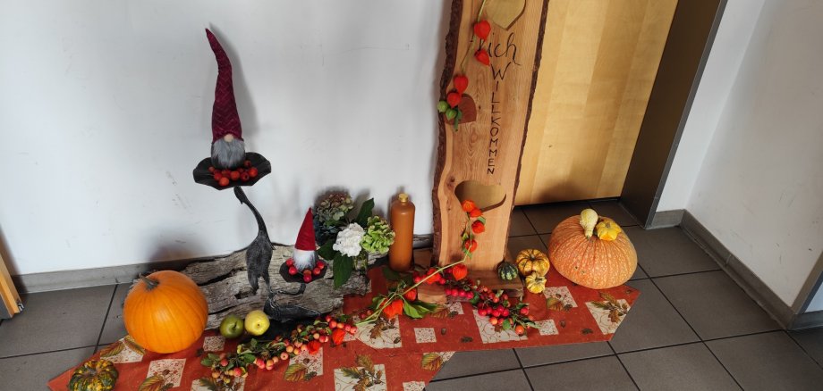 90 Gäste folgten dieser Einladung und erfreuten sich bereits im Foyer-Bereich über ein farbenfrohes Herbstgesteck.